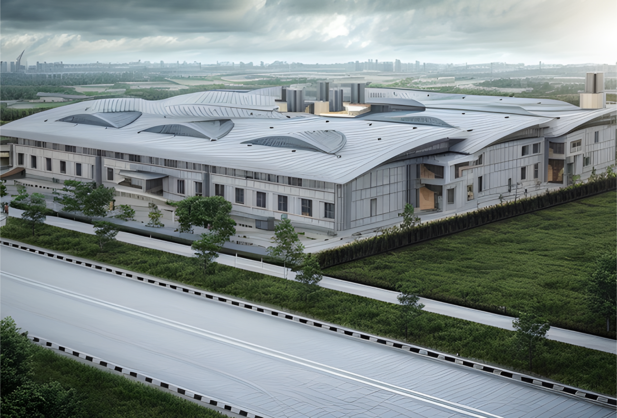 The design achieves balance through bold volumetric compositions. On the west façade, a vertical massing element extends to the terrace, serving as a parapet and anchoring the Eden Jaali visually. On the southern side, a sculptural cube-like block arrangement painted in layered grey tones creates depth and adds a dynamic play of light and shadow.