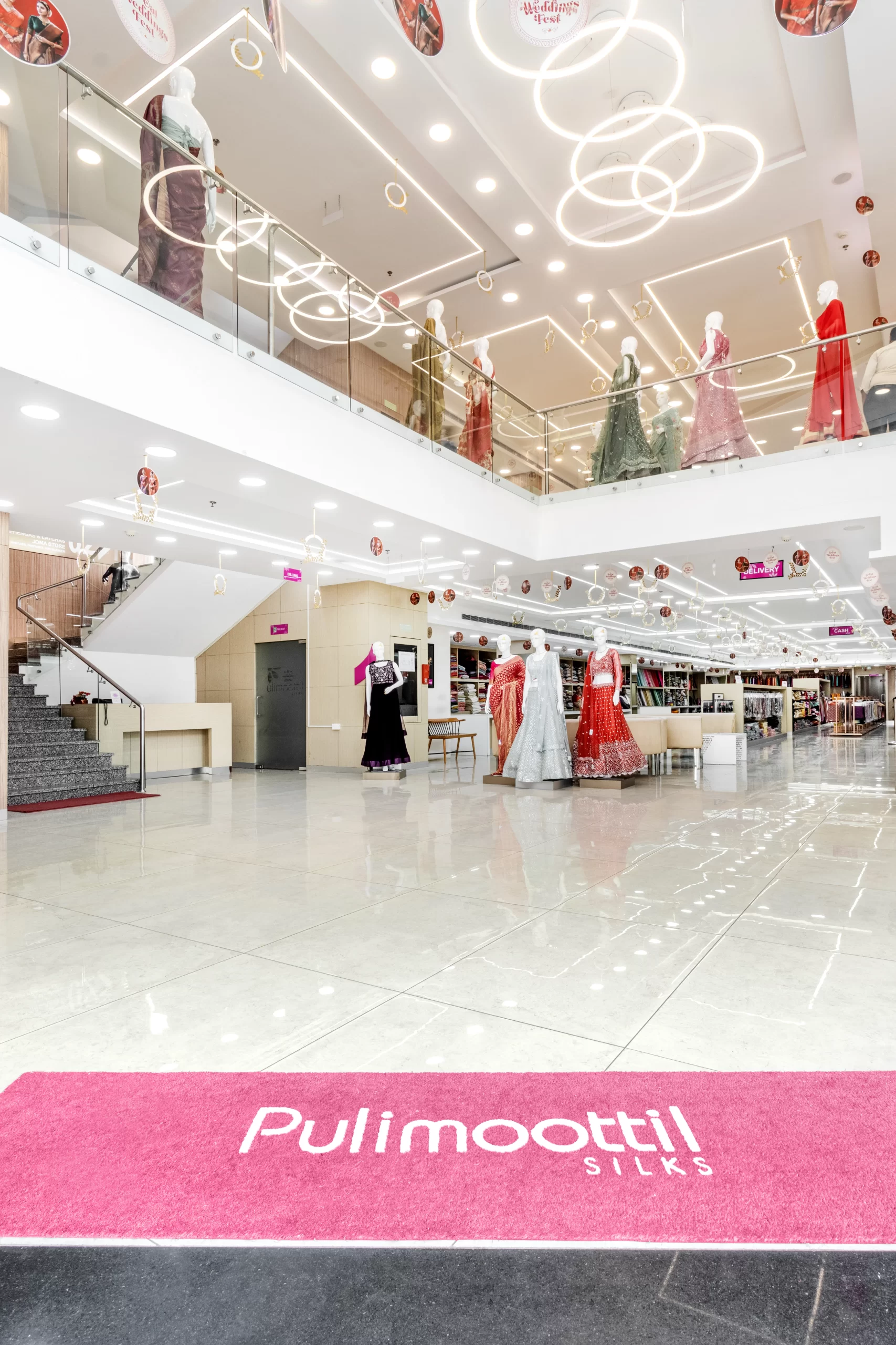 Nebulous Design, entrusted by Pulimoottil Silks, undertook the remarkable task of designing two grand showrooms in Kollam and Thiruvalla. Spanning an impressive 60,000 sq. ft. and 40,000 sq. ft. respectively, these showrooms were crafted to embody the essence of Pulimoottil Silks and showcase their best business practices.