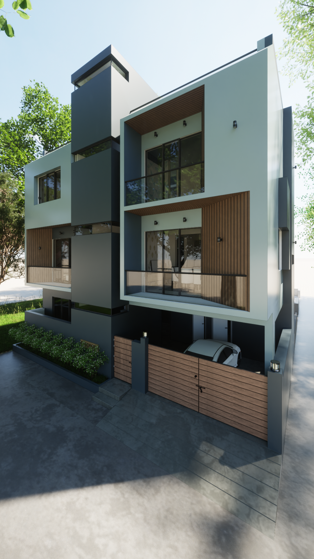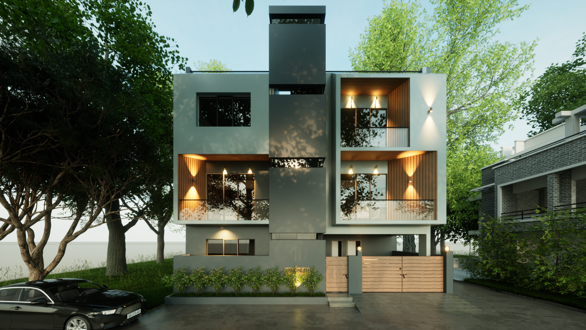 The living, dining, and kitchen proudly showcases exquisite sage flutes that seamlessly blend with the concrete, while black light fixtures provide a striking contrast. The inviting warmth of walnut and oakwood embraces the space, and the addition of Statuario tiles adds captivating accents throughout.There is a whimsical swing that takes center stage nestled within the captivating interiors of this home, while the ambient cane lighting enhances the overall ambiance. The bathrooms showcase printed floor tiles paired with muted wall tiles, creating a tranquil atmosphere. In the master bedroom, a combination of white and wood accents creates a serene and inviting space. There is also a whimsical swing that takes center stage nestled within the captivating interiors of this home.
