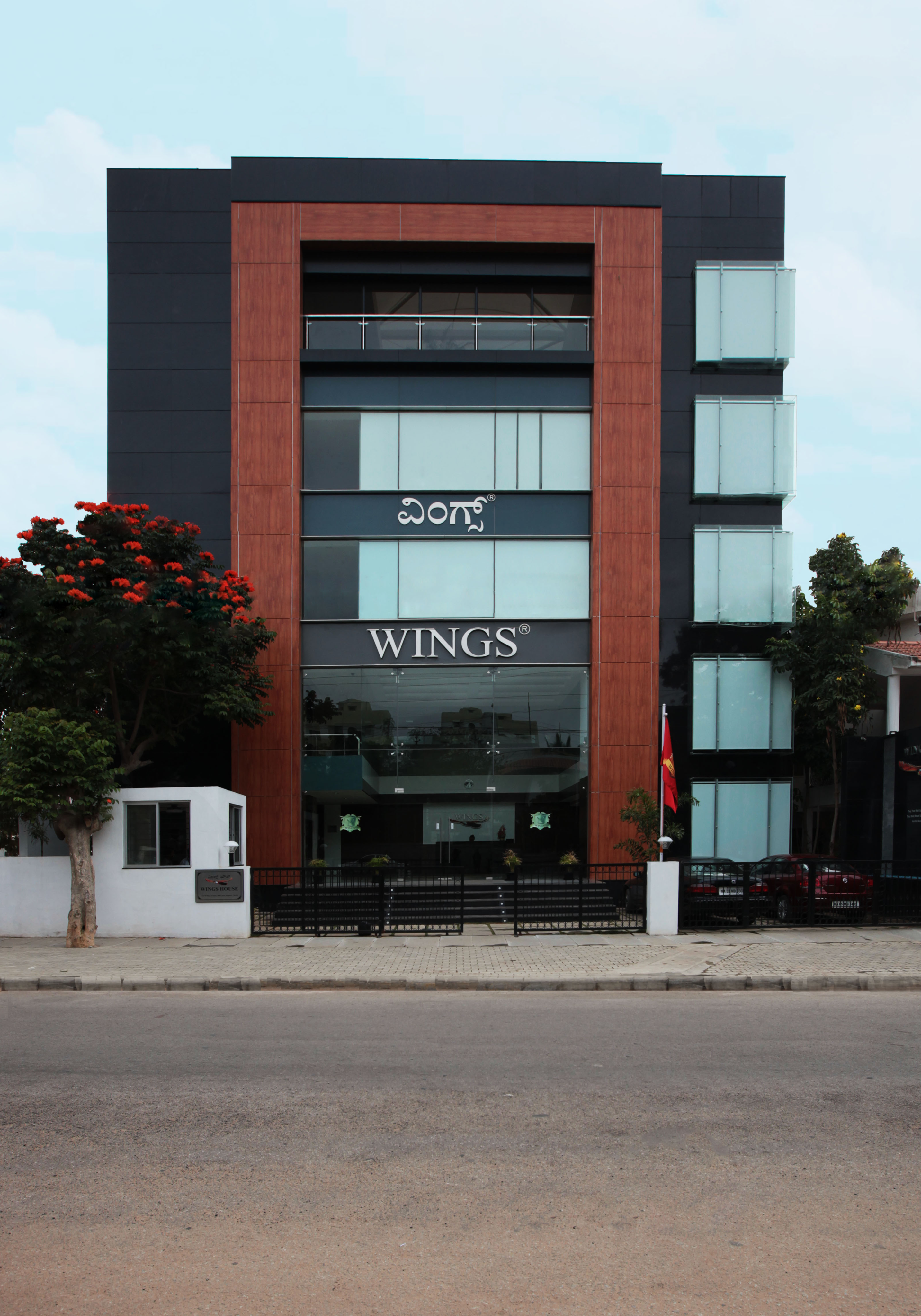 Wings Group of Companies commissioned Nebulous Design to design their headquarters located in Bangalore. The forefront of our vision was a meticulous design process that began with an understanding of the potential of the available plot. Efficient space planning led to the maximization of the utility of the permissible built-up area. This commercial building boasts a well-designed space, consisting of a basement, a ground floor, three extra floors, and a breathtaking terrace cafeteria. This combination of levels offers an ideal setting for the company’s headquarters.