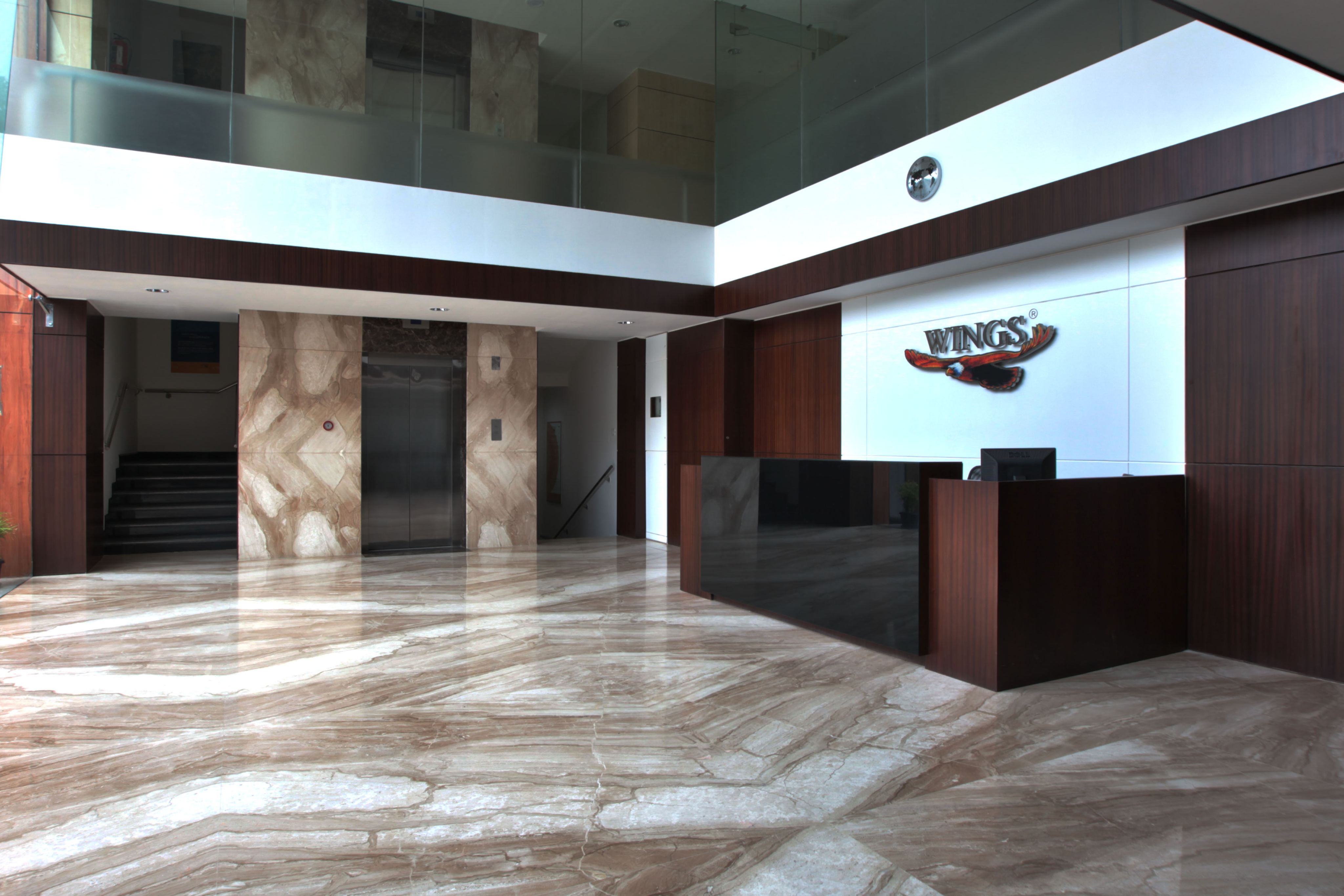 We were privileged to be the first to incorporate Fundermax, an exceptional facade fascia material, Fundermax, sourced all the way from Austria. This unique opportunity allowed us to enhance the aesthetic appeal and quality of our architectural designs. The teak walnut finish with the black of the polished granite brought a sense of boldness, sleekness and refinement to the overall design detail. At Nebulous Design, we firmly believe that a building truly comes to life when it possesses exceptional infrastructure. This philosophy is evident in every aspect of the Wings headquarters, showcasing our unwavering commitment to excellence.